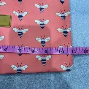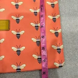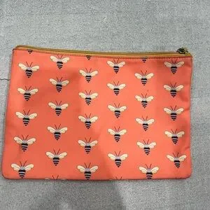 Stylish coral pouch with bee motif. Perfect for small essentials.