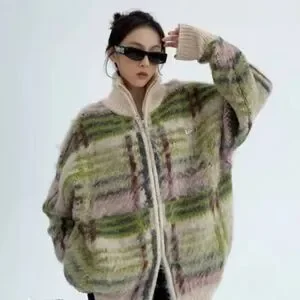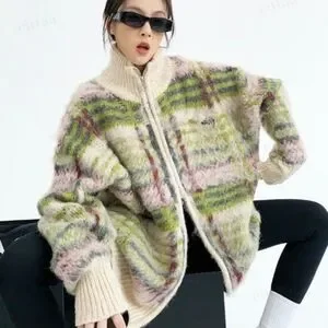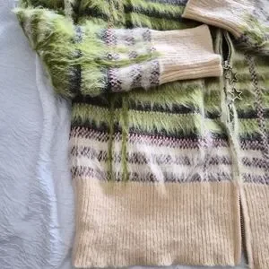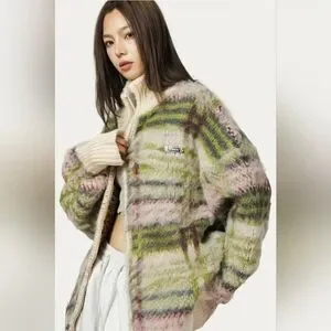 Fuzzy Knitted Mock Neck Cardigan ▪︎ Multi Color ▪︎ MD