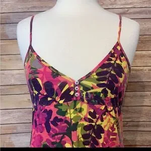 Bright and cheery empire waist dress with 3 buttons. Can wear as dress or Beach cover up. Cotton in good condition. Adjustable straps