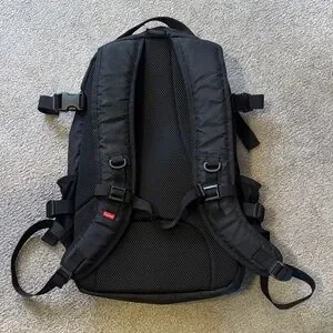 Supreme Black Vertical Logo Backpack with Strap Detailing