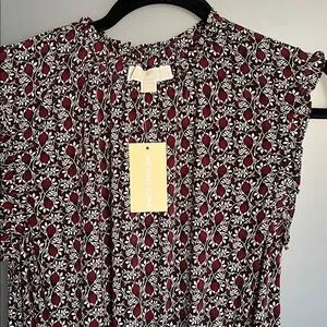 Michael Kors black maroon dress high neck smocked waist ruffed hem size M