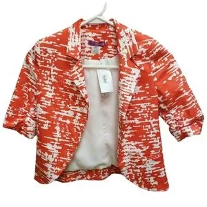 Aqua Vibrant Cropped Blazer Red White Abstract Print