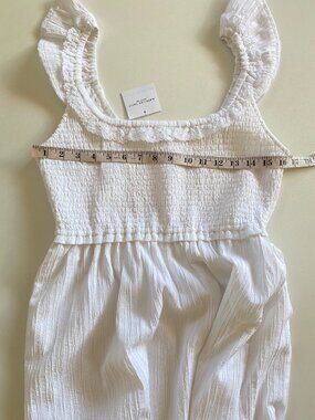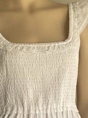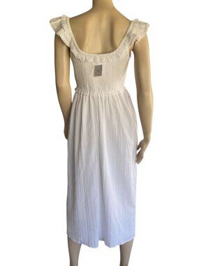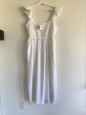 SZ Med American Eagle NWT Flutter Sleeve Smocked Midi White Dress. Lined, Side pockets, square neckline featuring delicate embroidered lace trim and feminine flutter sleeves. Measurements Flat Lay: P to P: 16.5" / Length From shoulder to hem: 45.5".