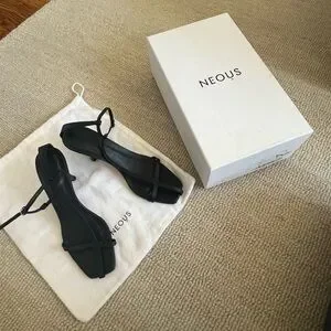 Neous Jumel Navy Strappy Square-Toe Heeled Sandals Sz 39