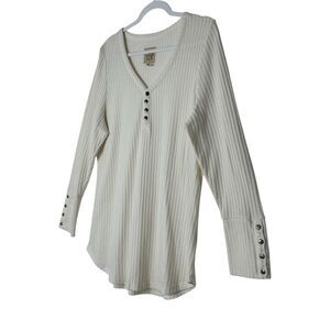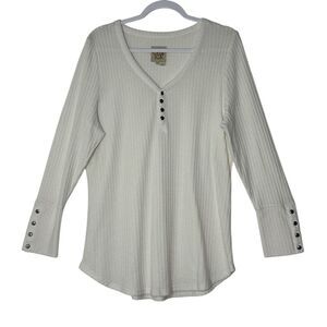 Chaser Top Women XXL Beige Long Sleeve Waffle Knit Cozy Blouse Stretch Classic