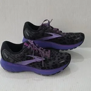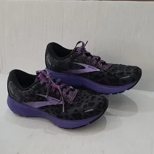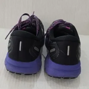 Great condition. Brooks women's athletic shoes in black with purple accents. Cushioned midsole for smooth strides. Breathable patterned upper. Lace-up closure for secure fit. Designed for daily runs and training.