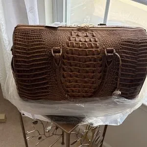 Brown Croc-Embossed Leather Weekender Bag
