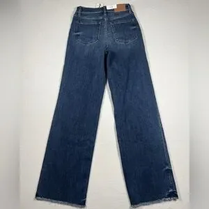 Classic dark blue straight leg jeans for everyday wear. Clean silhouette with subtle fading for a timeless look. Comfortable mid-rise fit made from durable denim. Versatile dark blue color pairs easily with casual and dressy tops.