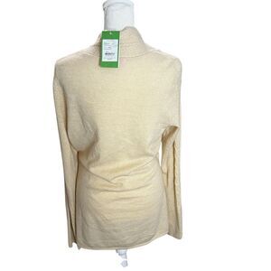 Beautiful piece- I bought it and love the cashmere but it is a warmer cream and runs smaller than I was expecting. Better for someone with an olive or warm complexion. Just want to make back my money, or close. Make an offer! It’s truly a perfect sweater for someone else.