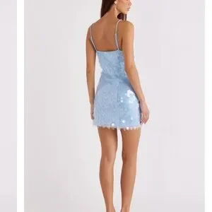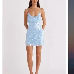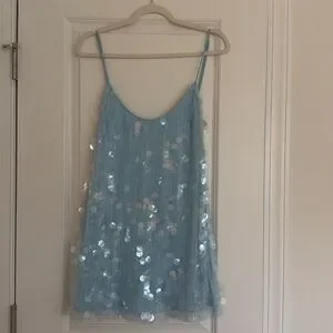 SNDYS Blue Sequin Slip Dress