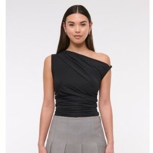 Sleeveless camisole with soft draped twist detailing. Stretchy knit fabric offers a smooth fit. Ruched side seams enhance a flattering shape. Versatile piece for layered or standalone wear.
