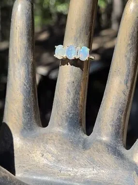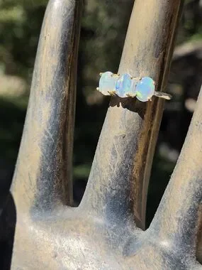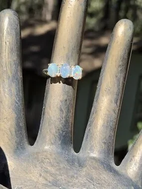Opal Trio Solitaire Sterling & Gold Ring Sz6.75