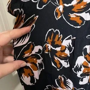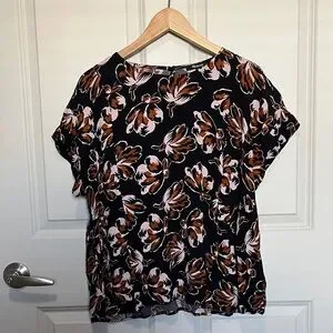 Madewell Black Floral Short Sleeve Blouse with Brown & Pink Accents PLUS SIZE