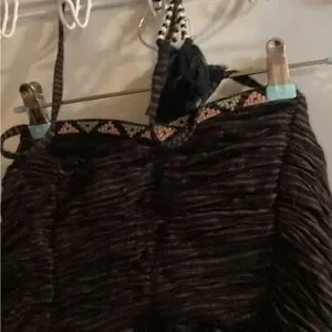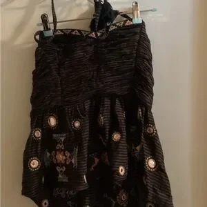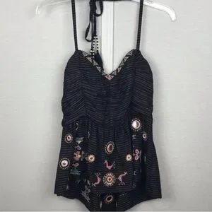 Free People Pink Flamingo Embroidered Halter Bohemian Strapless Top Size Medium