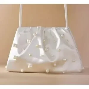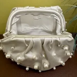 Anthropologie BHLDN Frankie Clutch Pearl Edition White Bridal Black Tie