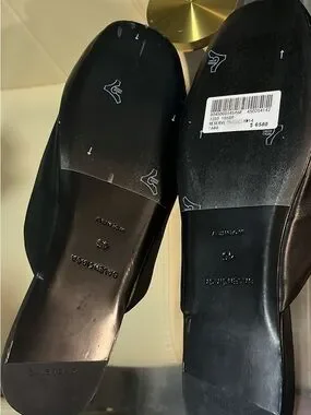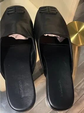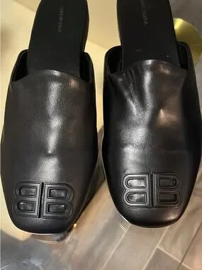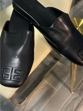 Balenciaga Black Leather BB Embossed Slide Loafers
