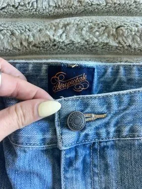 Vintage Y2K Aeropostale denim mini skirt. Tagged a size 9/10, measured to a 33” waist (keep in mind it is meant to sit mid to low waist). 100% cotton.