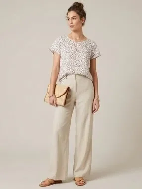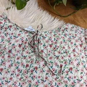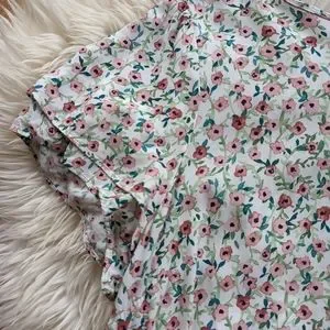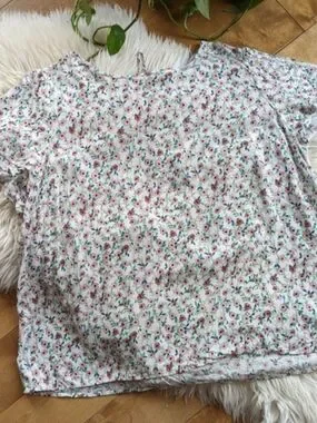 Soft and light weight floral printed flutter sleeve REITMANS blouse with key hole/tie back.
