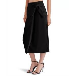 Elevate your style with the Steve Madden Navia Midi Skirt, perfect for minimalist fashion enthusiasts. This elegant wrap skirt in black features a sophisticated bow tie design and is crafted from high-quality polyurethane faux leather. Designed with a pull-on closure for comfort, its versatile style makes it a wardrobe essential, suitable for both workwear and evening outings. Add this adaptable piece to your collection and step out with confidence.