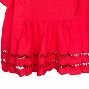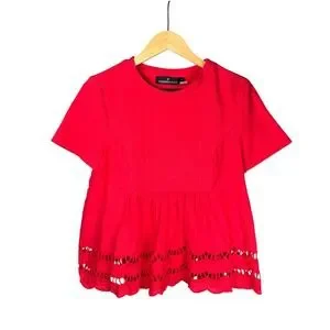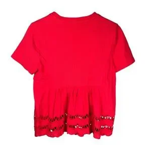Pomander Place Red Eyelet Peplum T Shirt Women's Size S Short Sleeve Casual Top