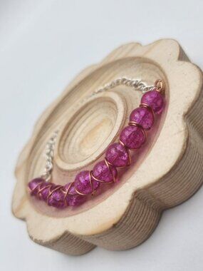 Handmade Wire-wrapped Adjustable Pink Beaded Bracelet