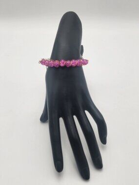 Elegant pink beaded bracelet with a silver adjustable chain, perfect for any occasion.