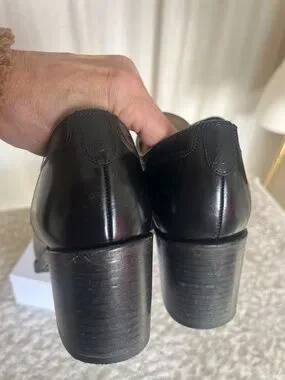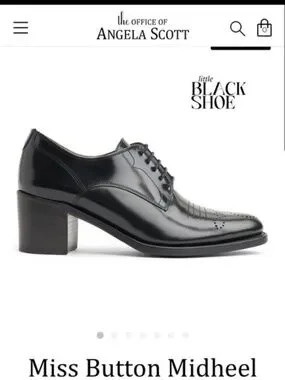 The Office of Angela Scott Miss Button is a handcrafted, high-end derby/Oxford mid-heel designed for women, featuring a signature chunky heel, pointed toe with brogue detailing, and Goodyear-welt construction. Handmade in Portugal, these shoes are constructed of premium leather, and a signature hand-stamped sole, designed for comfort and longevity. You'll definitely be giving off 'power vibes' when you wear this classic yet sturdy shoe! They are in very good condition and come with the OAS felt drawstring brag. I wear size 9.5 and these fit me perfectly.