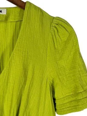Boden Lime Green Cotton Midi Dress Empire Waist Puff Sleeve 2R