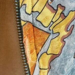 FEATURES/ACCENTS: Soft and Clean AOP Bright Print w/Sun Zipper Pull. Nylon Lined. 2 front slip Pockets. Lightweight. Sewn in Shoulder Pads