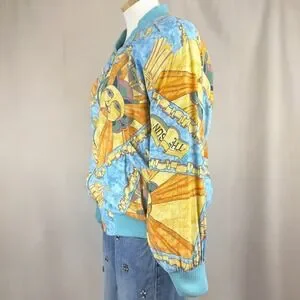 Vintage 80s MULBERRY STREET Womens (M) Bomber Jacket Coastal Aztec Sun Gorp Mobwife