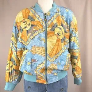 Vintage 80s MULBERRY STREET Womens (M) Bomber Jacket Coastal Aztec Sun mobwife