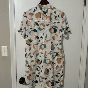 Rachel Zoe White Button-Front Shirt Dress with Pink, Green, and Tan Floral Print