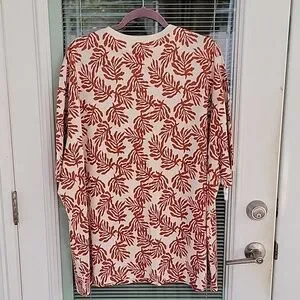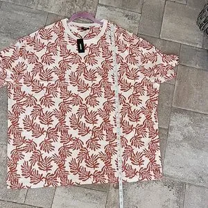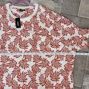 NWT Express Pima Cotton Graphic T Cream Top with Rust Leaf Print Sz XXL