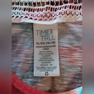 Time and Tru Floral Watercolor Tie-Hem Top in Blue, Red, Yellow