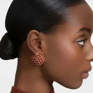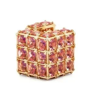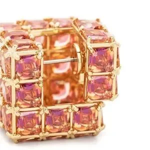 A 'mathemagical' structure from the Curiosa family, this striking stud earring gives the illusion that it's suspended from your ear. Designed with a geometric lattice of square princess-cut stones, its vibrant orange hue is bichromatic, creating a unique kaleidoscopic effect from every angle. Delicate stone embellishments complete the intricate design, set on gold-tone plating. Wear yours solo or spark your imagination and stack with contrasting colors and shapes.