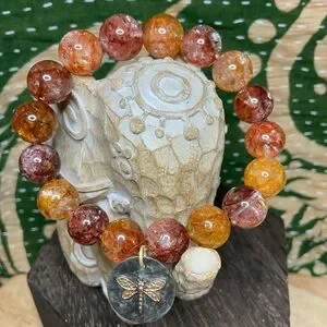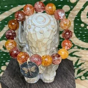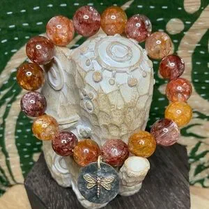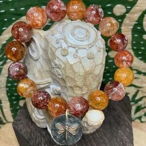 Sparkling Hematoid 12mm with Dragonfly Charm