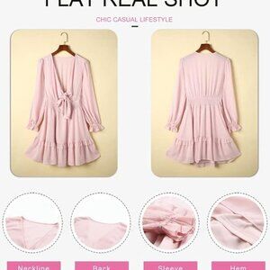 Mini Dress Casual Dress Lantern Sleeve Deep V Neck Solid Color Tie Knot Elegant Spring Dress With skin-friendly fabrics, lightweight, no sticky hairs and quick drying, this eprire waist dress gives you a floating feeling.
