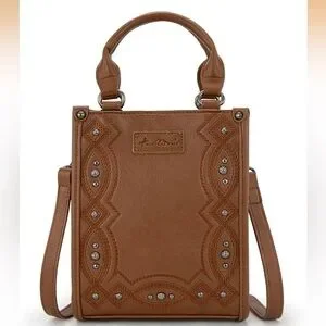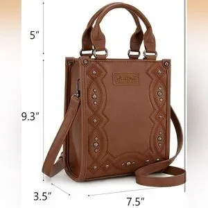 Montana West Brown Embroidered Crossbody Bag with rivet details