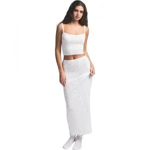 SKIMS Pointelle Cream Ribbed Maxi Skirt