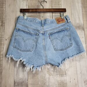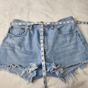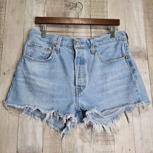Levi's Classic High-Rise Frayed Hem Denim Shorts Light Blue 31. Button Fly. 501