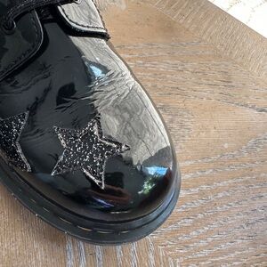 Super cool Dr. Marten’s patent leather 1460 glitter star lace up boots. Zip on side. Minor creases and scuffing. Never worn outside.