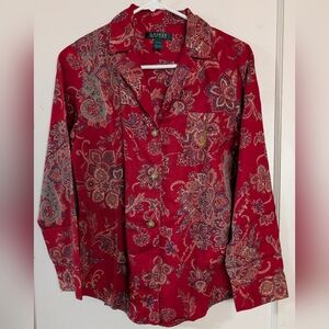 Ralph Lauren Crimson Paisley Button-Front Shirt Blouse