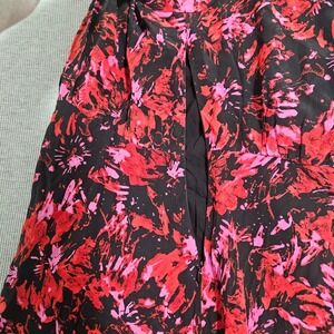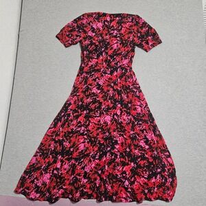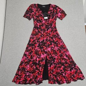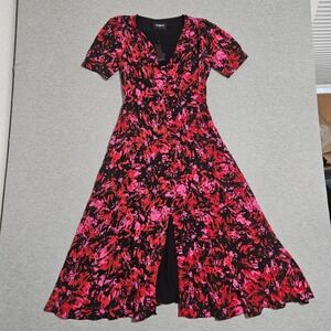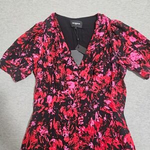 The Kooples Firework Print Midi Dress Black Red Pink V-Neck Size 1 FROB24151K
