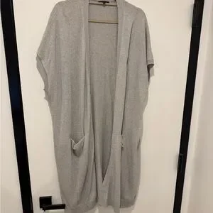Lafayette 148 New York Light Gray Open-Front Short-Sleeve Cardigan with Pockets