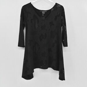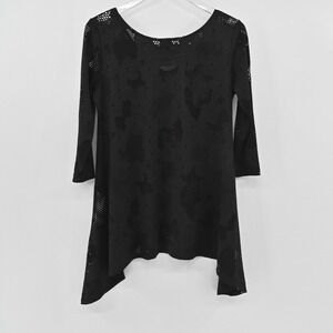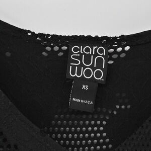 CLARA SUN WOO Womens Laser Floral Top Size XS Whimsigoth Lace Black Asymmetric