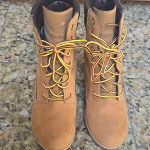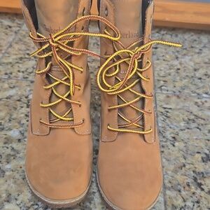 Timberland Tan Nubuck Lace-Up Block Heel Boots Size 7.5