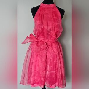 Venus Hot Pink Organza Halter Mini Dress- Size M NWOT
