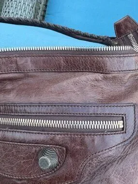 Auth Balenciaga Brown Castagna Agneau Rose G21 Hardware Day Hobo Bag