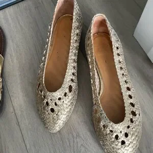Sezane Gold Woven Pointed-Toe Flats