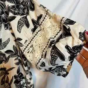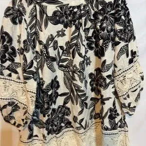 Christian Siriano Black & White Floral V-Neck Tunic with Lace Trim